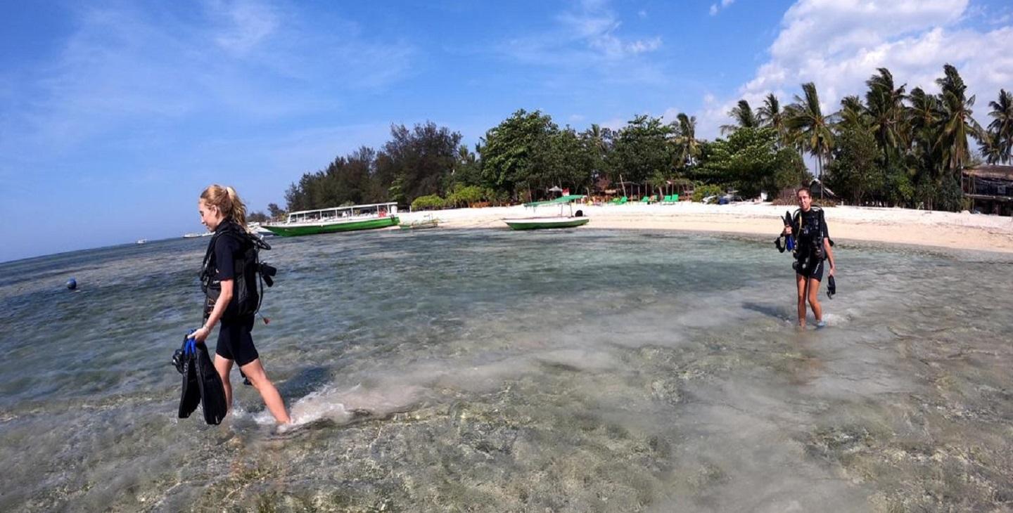 Un primo traghetto mi ha portata da Padangbai al piccolo porto di Gili Air: una delle tre isole che compongono l’arcipelago (insieme a Gili Trawangan e a Gili Meno). Le minuscole Gili si trovano a nord-ovest della costa di Lombok e sono raggiungibili solo tramite traghetti (“fast boat”) dalle due isole principali, in quanto non esistono aeroporti. Ogni isola ha una personalità diversa: Gili T è la più vivace e ogni sera ospita diverse feste sulla spiaggia a ritmo di musica; Gili Meno è invece la meta perfetta per una fuga romantica, in quanto è l’isola più piccola e tranquilla; Gili Air offre una combinazione perfetta di servizi di qualità e atmosfera rilassata. Le spiagge di sabbia bianca (spesso deserte), le acque turchesi e le palme da cocco rendono le isole un paradiso naturale, mentre la bellezza dei fondali e l’eterogeneità della fauna marina permettono di praticare attività di snorkeling e immersioni. Le Gili fanno infatti parte del cosiddetto “Triangolo dei Coralli”. Pur costituendo solo l’1,6% della superficie del pianeta coperta dagli oceani, infatti, quest’area ospita i tre quarti di tutte le specie coralline esistenti ed è l’habitat naturale di sei delle sette specie esistenti di tartarughe marine.